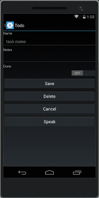 با استفاده از این view می توانید property های Name، Notes و Done را تغییر دهید و یا یک ایتم را حذف کنید.